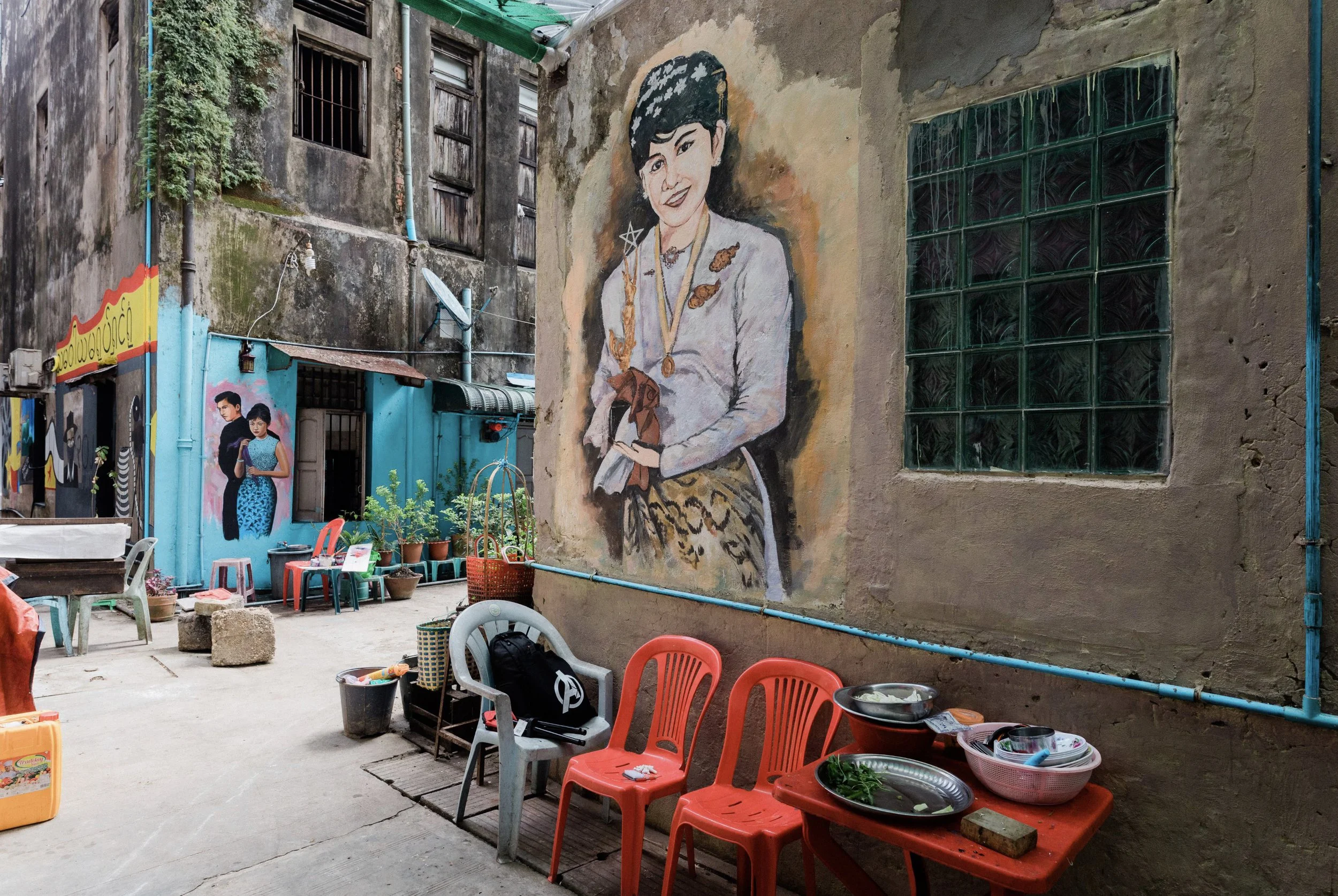 YangonWalls a recruté une équipe de volontaires pour le nettoyage des allées, les habitants du quartier ont arrêté de jeter leur détritus par les fenêtres et se sont engagés a entretenir les contres allées.